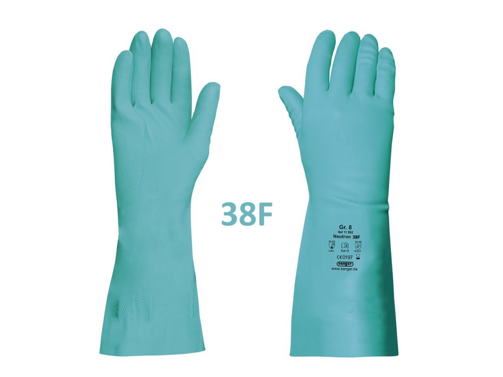 Rukavice gumové technické Neutron "38F" 330/0,38 mm, nitrilové, zelené, semišované
